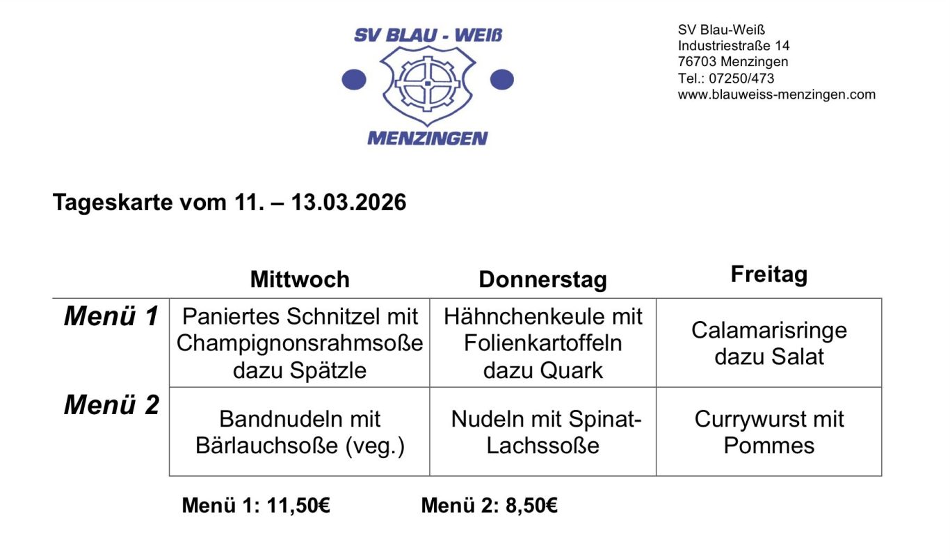 Besuchen Sie uns in der Sportgaststätte Blau-Weiß in Menzingen bei gut bürgerlicher Küche und wechselndem Mittagstisch