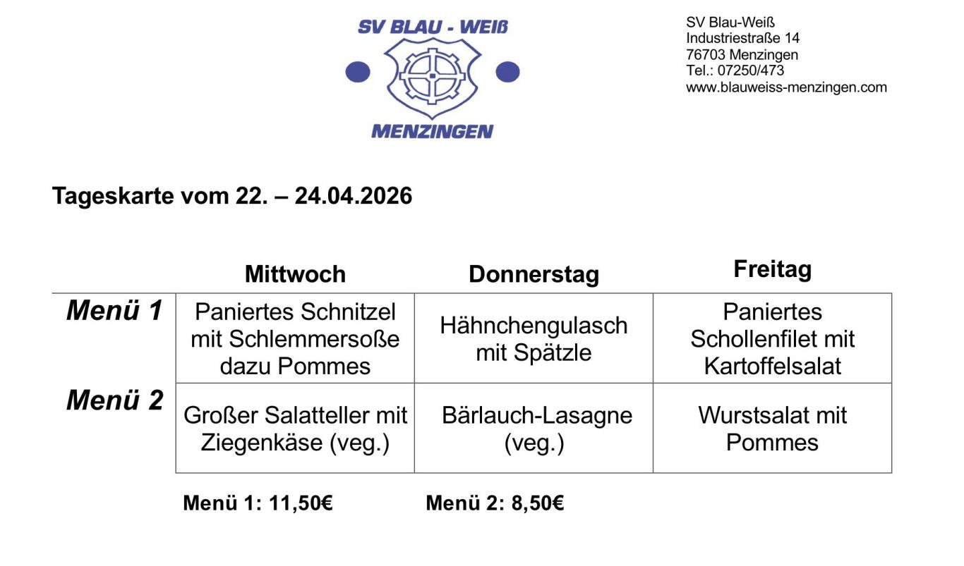 Besuchen Sie uns in der Sportgaststätte Blau-Weiß in Menzingen bei gut bürgerlicher Küche und wechselndem Mittagstisch